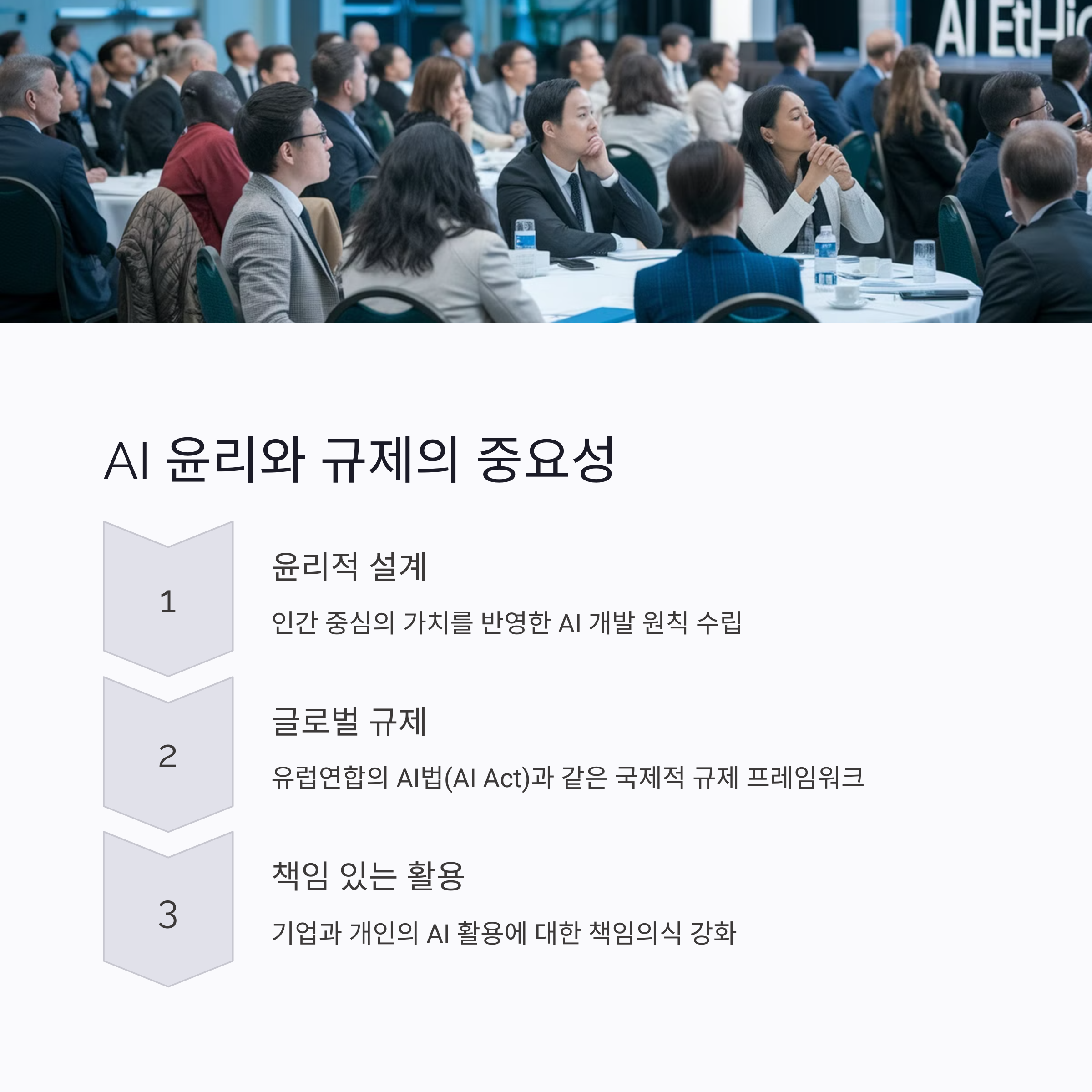 AI를 어떻게 설계하고, 어떤 윤리 기준을 적용할 것인가에 대한 논의는 앞으로 더욱 중요해질 것입니다. 유럽연합의 AI법(AI Act)과 같은 글로벌 규제도 이러한 필요에 대응하는 흐름입니다.