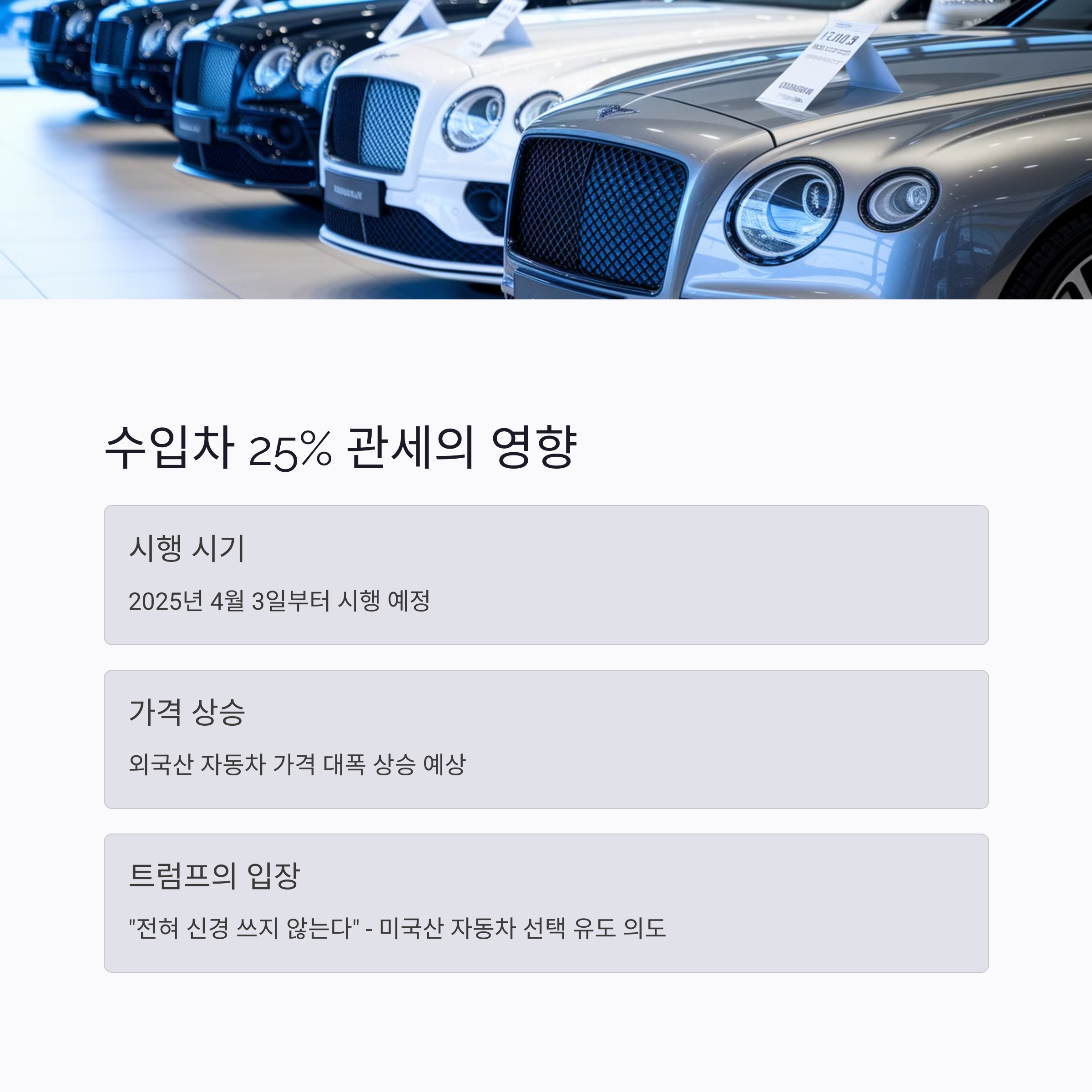 | 트럼프 관세 뉴스 | 수입차에 25% 관세 부과 공식 발표 |