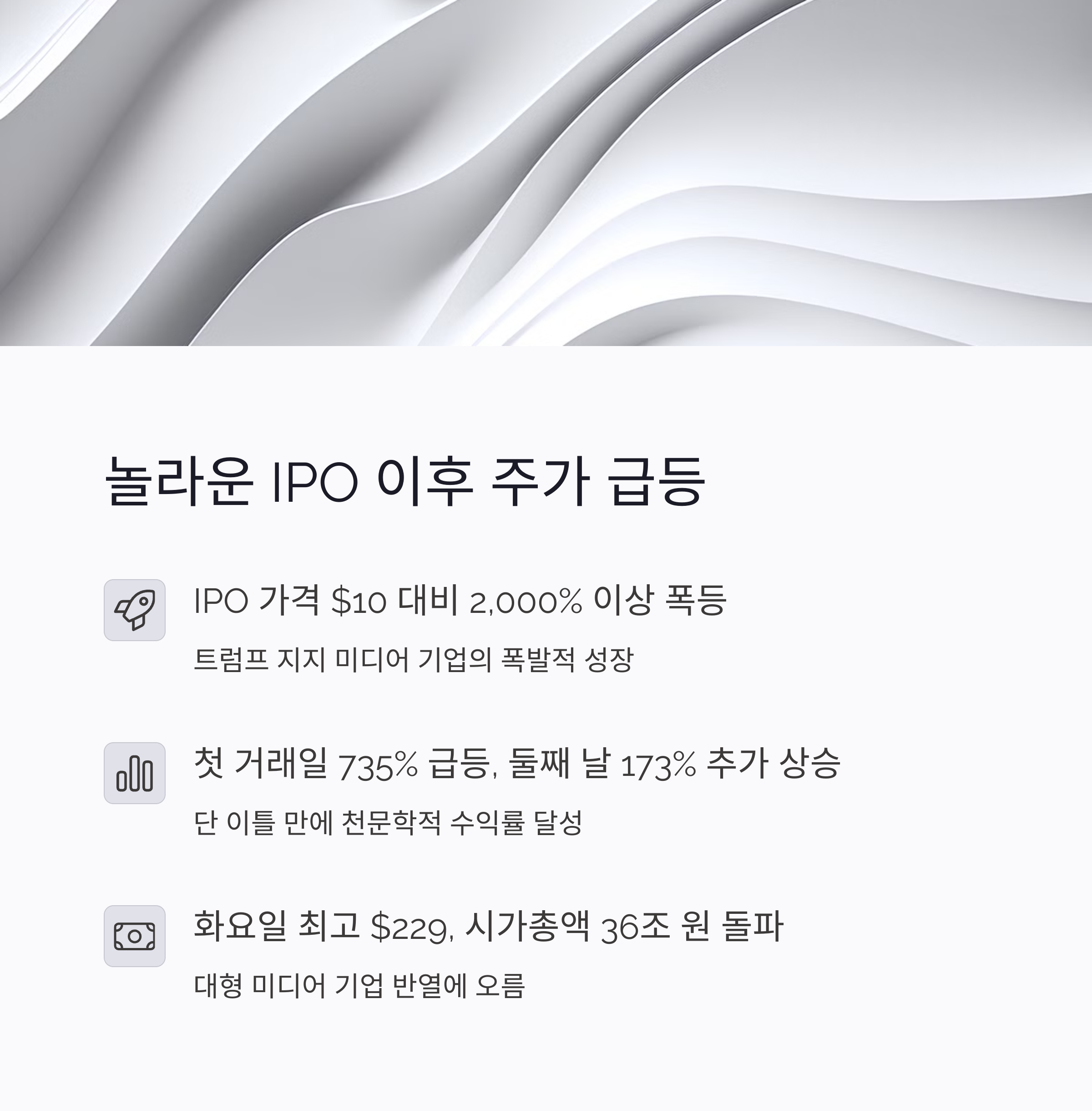 최근 미국 증시에서 뉴스맥스(NMAX)가 IPO(기업공개) 직후 폭발적인 주가 상승을 기록하며 시장의 이목을 집중시키고 있습니다. 단 하루 만에 735%라는 놀라운 상승률을 보인 데 이어, 이튿날에도 173%나 추가 상승하는 등 단기적인 급등세가 이어지고 있는데요. 특히 MAGA(트럼프 지지층) 성향의 투자자들 사이에서 강한 지지를 받고 있어 정치적 성향도 주가 흐름에 영향을 미치고 있습니다. 하지만 일부 전문가들은 이번 급등세에 대해 "유동성 부족으로 인한 일시적인 현상"이라며 우려를 표하고 있으며, 도미니온 소송 등 법적 리스크도 여전히 존재합니다. 그럼에도 불구하고 이번 뉴스맥스의 사례는 미니 IPO 이후 급등하는 종목에 대한 투자 심리를 다시 한번 확인시켜주는 계기가 되었습니다. 이 글에서는 뉴스맥스의 폭등 배경, 재무 현황, 투자자 반응 등을 종합적으로 살펴보겠습니다.