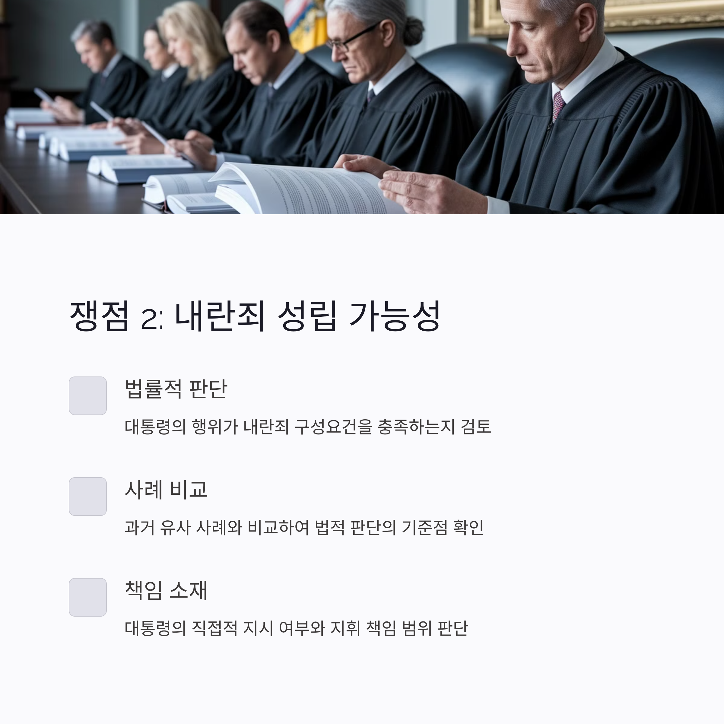| 주요 쟁점 | 비상계엄 적법성·내란죄 성립 여부·사회 파장 |